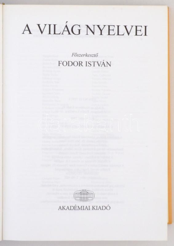 A világ nyelvei. Főszerk.: Fodor István. Budapest, 1999, Akadémiai Kia... https://www.darabanth.com/hu/285-Gyorsarveres/285.0/Konyvek/Konyvek-Egyeb-ritkasagok~100042/A-vilag-nyelvei-Foszerk-Fodor-Istvan-Budapest-1999-Akademiai-Kiado-Kiadoi-mubor-kotC3~II1448942