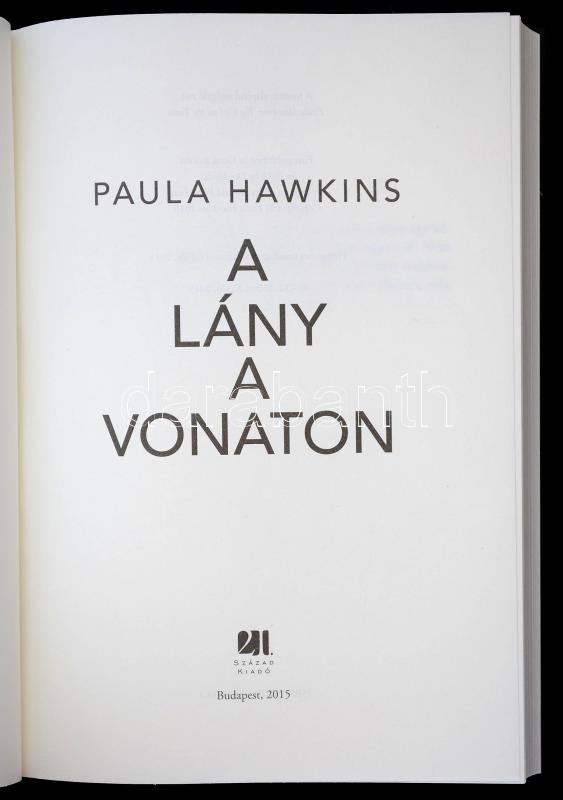 Hawkins, Paula: A lány a vonaton. Bp., 2015, XXI. Század Kiadó. Karton... https://www.darabanth.com/hu/285-Gyorsarveres/285.0/Konyvek/Konyvek-Egyeb-ritkasagok~100042/Hawkins-Paula-A-lany-a-vonaton-Bp-2015-XXI-Szazad-Kiado-Kartonalt-papirkotesben-ved~II1486327