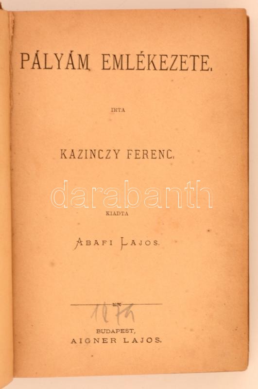 Kazinczy Ferenc Munkái 4. Pályám Emlékezete. Nemzeti Könyvtár. Budapes... https://www.darabanth.com/hu/285-Gyorsarveres/285.0/Konyvek/Konyvek-Egyeb-ritkasagok~100042/Kazinczy-Ferenc-Munkai-4-Palyam-Emlekezete-Nemzeti-Konyvtar-Budapest-en-Aigner-Lajos-~II1437074