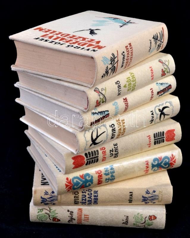 Nyirő József 8 db munkája: Kopjafák; Jézusfaragó ember; Az én népem; Madéfalvi veszedelem; Halhatatlan élet; Uz Bence; Havasok könyve; A sibói bölény. Halinakötésben, példányonként változó, nagyrészt szép állapotban.