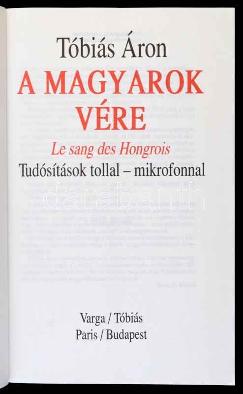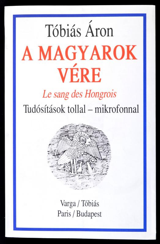 Tóbiás Áron: A magyarok vére. Le san des Hongrois. Tudósítások tollal ... https://www.darabanth.com/hu/285-Gyorsarveres/285.0/Konyvek/Konyvek-Egyeb-ritkasagok~100042/Tobias-Aron-A-magyarok-vere-Le-san-des-Hongrois-Tudositasok-tollal--mikrofonnal-Parizs-~II1493196