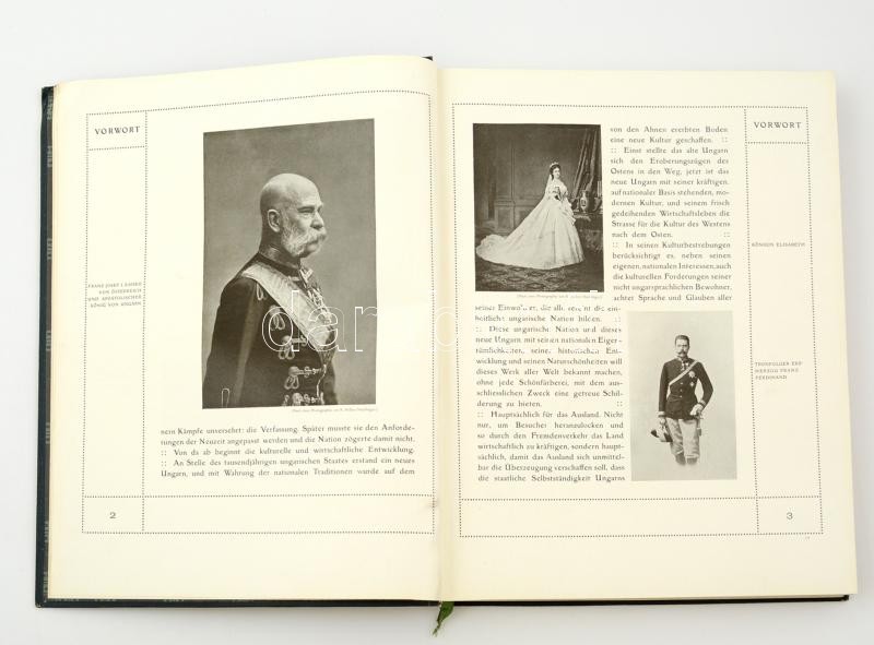 Ungarn - Magyarország - A Kereskedelemügyi M. Kir. Miniszter megbízásából kiadja a Magyar Kir. Államvasutak igazgatósága. Szerkesztette: Kain Albert. Bp., 1909. Erdélyi. Lapszámozáson belül gazdag képanyaggal. Kiadói, aranyozott, dombornyomású, festett egészvászon kötésben. Kifogástalan állapotban, védőtokban / Nice elbuum about Hungary in Geman with many illustrations. In painted full linen binding. Flawless condition!
