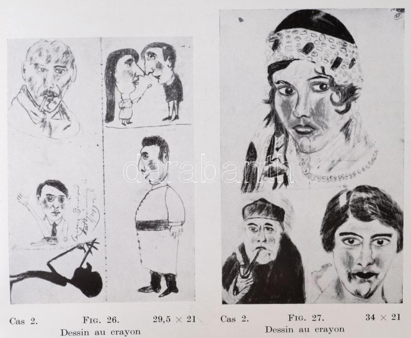 Iréne Jakab: Dessins et peintures des aliénés. Analyse au point de vue psychiatrique et artistique. Bp., 1956, Akadémiai Kiadó. Kiadói egészvászon kötés, kiadói kissé szakadozott papírborítóban, francia nyelven. / Linen-binding, in paper cover, in french language.