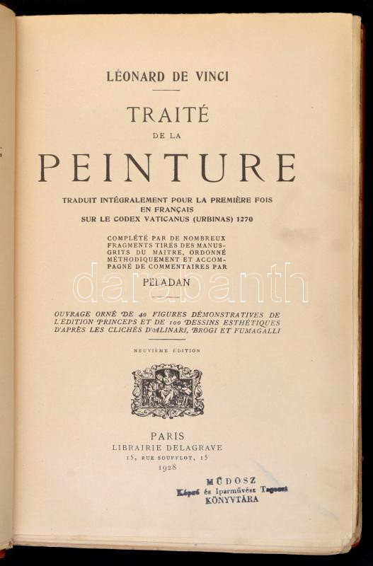 Vinci, Léonard de: Traité de la peinture. Párizs, 1928, Libraire Delag... https://www.darabanth.com/hu/285-Gyorsarveres/285.0/Konyvek/Konyvek-Epiteszet-muveszet~100034/Vinci-Leonard-de-Traite-de-la-peinture-Parizs-1928-Libraire-Delagrave-Kesobbi-borkotes~II1484215
