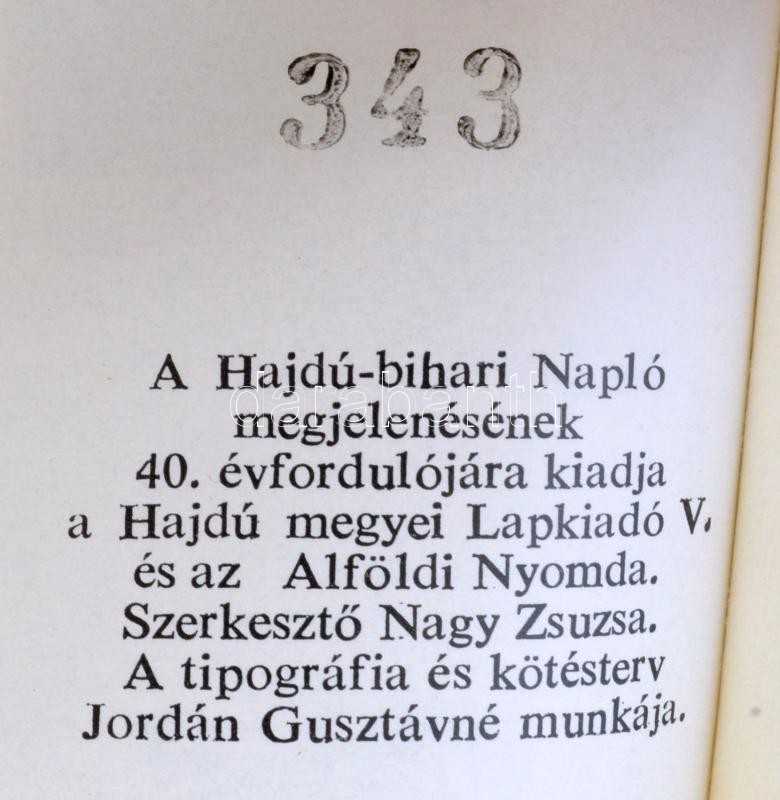 Negyven esztendő. A Hajdú-bihari Napló megjelenésének 40. évfordulójár... https://www.darabanth.com/hu/285-Gyorsarveres/285.0/Konyvek/Konyvek-Minikonyvek~100041/Negyven-esztendo-A-Hajdu-bihari-Naplo-megjelenesenek-40-evfordulojara-Szerk-Nagy-Zsuzsa~II1464166