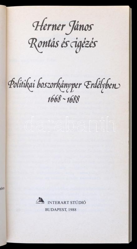 Herner János: Rontás és igézés. Politikai boszorkányper Erdélyben 1668... https://www.darabanth.com/hu/285-Gyorsarveres/285.0/Konyvek/Konyvek-Tortenelem~100031/Herner-Janos-Rontas-es-igezes-Politikai-boszorkanyper-Erdelyben-1668-1688-Bp-1988-Inter~II1489130