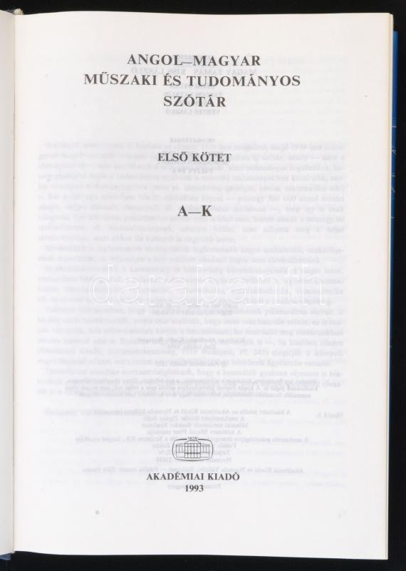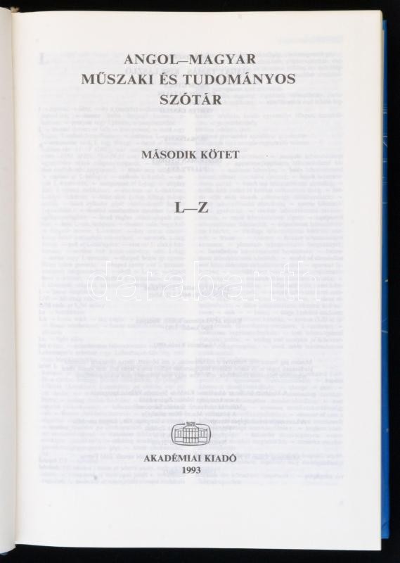 Angol-magyar műszaki és tudományos szótár. Szerk.: Magay Tamás, Kiss László. Bp., 1993, Akadémiai Kiadó. Kiadói egészvászon kötés, kiadói papírborítóban.