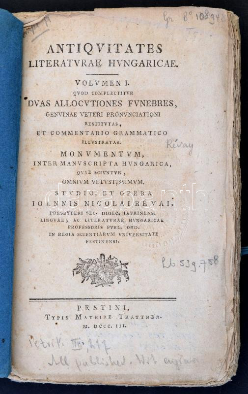 Révai, (Miklós) Nicolaus: Antiquitates literaturae Hungaricae. Volumen... https://www.darabanth.com/hu/285-Gyorsarveres/285.0/Konyvek/Konyvek-Tudomany-es-technika~100037/Revai-Miklos-Nicolaus-Antiquitates-literaturae-Hungaricae-Volumen-I-unicus--Pestini-1803~II1490052