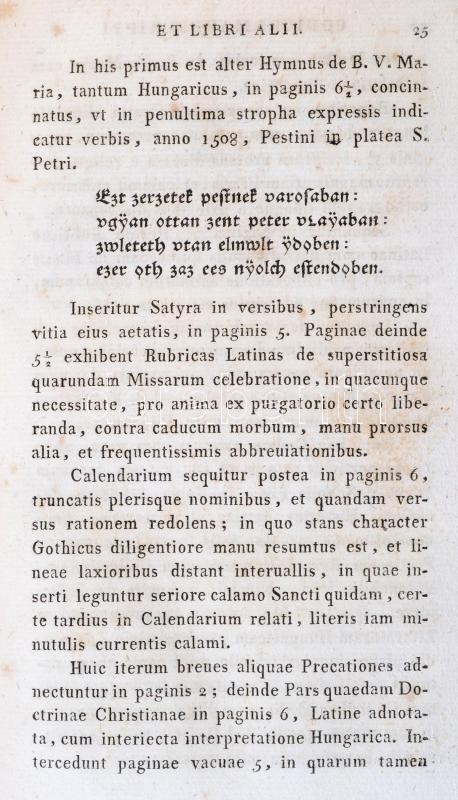 Pestini, 1803. Typis Matthiae Trattner. XII+360p. A mű elsőként közli tudományos magyarázatokkal kiegészítve a Halotti Beszéd szövegét. Korabeli, megviselt papírkötésben, tulajdonosi névbeírással.