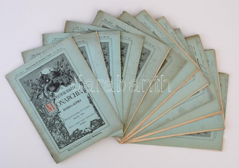 Az Osztrák-Magyar Monarchia Írásban és Képben, Magyarország III. kötetének 13 füzete (II., III., IV., V., VI., XI., XIII.,XIV., XV., XVI., XVII., XVIII., XIX. füzetek). Bp., é.n., Révai. Kiadói papírkötés, változó, kissé szakadozott állapotban.