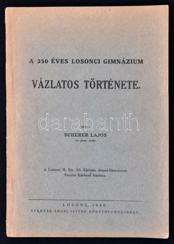 Scherer Lajos: A 350 éves losonci gimnázium vázlatos története. Losonc, 1940, Engel István. Tűzött papírkötésben, jó állapotban. + Hermel, Edmund [Ödön]: Lučenec - Losonc na historických pohľadniciach. Losonc, 1997, L. C. Print. Papírkötésben, jó állapotban.