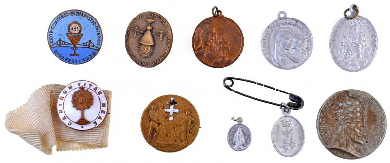Leírás: 10db-os vegyes vallási témájú medál és jelvény T:2