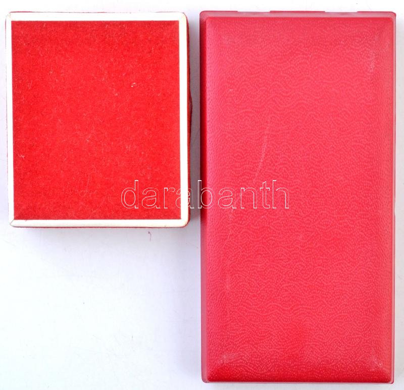 Leírás: ~1960. "Az Oktatásügy Kiváló Dolgozója" aranyozott, zománcozott fém jelvény tokban + ~1970. "Szocialista Kultúráért" zománcozott fém kitüntetés mellszalagon, tokban T:2