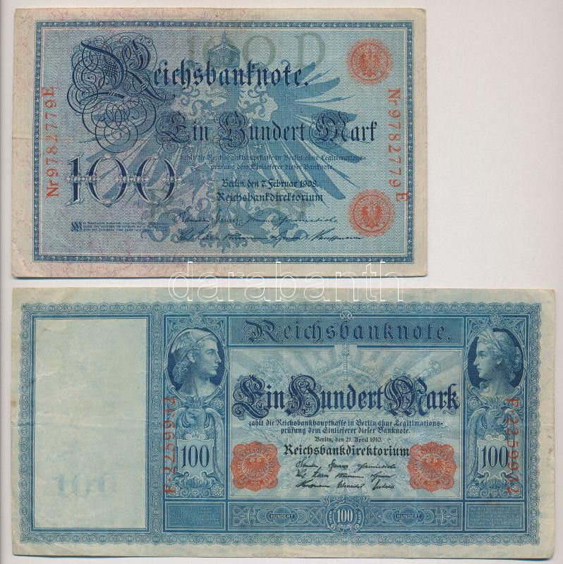 German Empire 1908. 100 Mark + 1910. 100 Mark C:F,VG