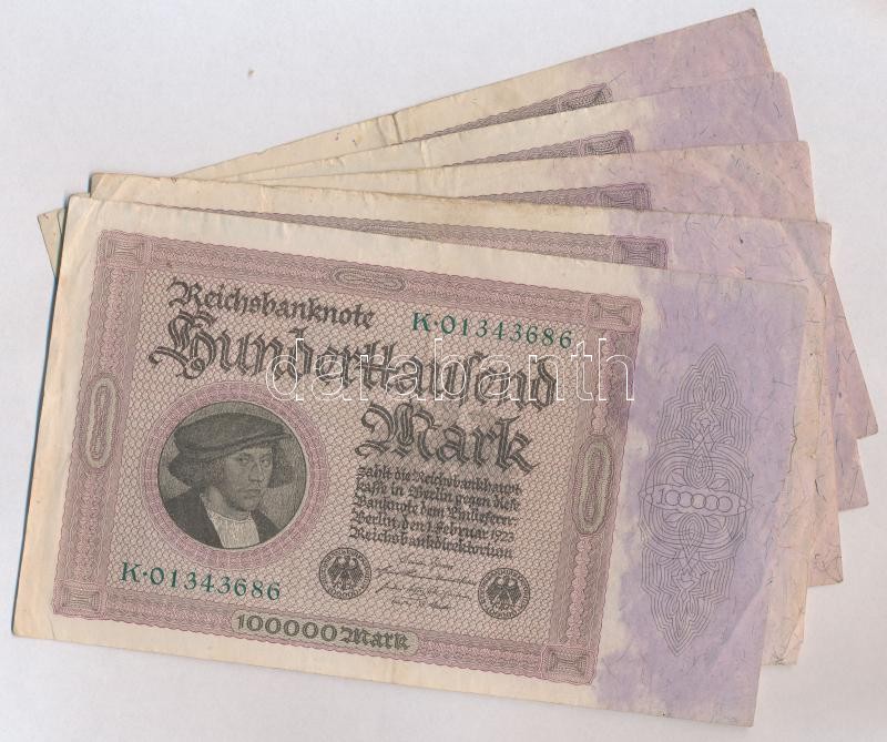 Germany / Weimar Republic 1923. 100.000 Mark (5x) C:F