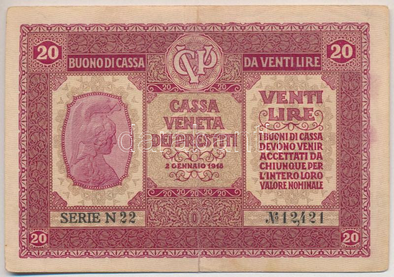 Olaszország / Velence / Osztrák-magyar megszállás 1918. 20L T:III rész... https://www.darabanth.com/hu/285-Gyorsarveres/285.0/Numizmatika/Kulfoldi-bankjegyek~300011/Olaszorszag-Velence-Osztrak-magyar-megszallas-1918-20L-TIII-reszben-restauralt--Italy-~II1483082