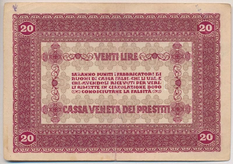 Italy / Venice / Austro-hungarian occupation 1918. 20 Lire C:F partially restored