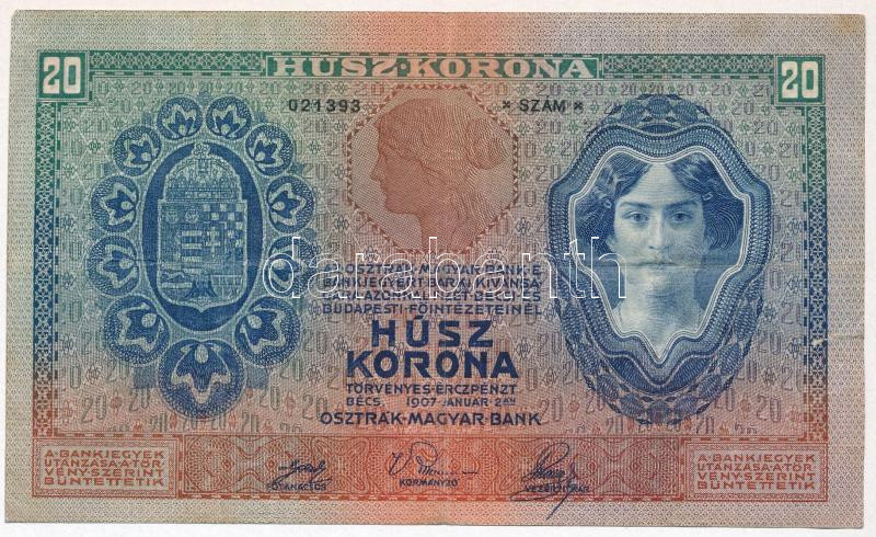 Adamo K16B https://www.darabanth.com/hu/285-Gyorsarveres/285.0/Numizmatika/Magyar-bankjegyek~300006/1907-20K-TIII-szakadas--Adamo-K16B~II1492154