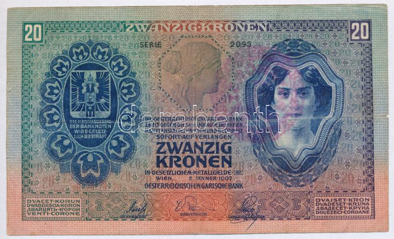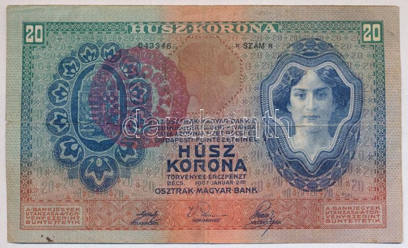 Ad... https://www.darabanth.com/hu/285-Gyorsarveres/285.0/Numizmatika/Magyar-bankjegyek~300006/1907-20K-piros-MAGYARORSZAG-felulbelyegzessel--TIII---Adamo-K16B~II1483958