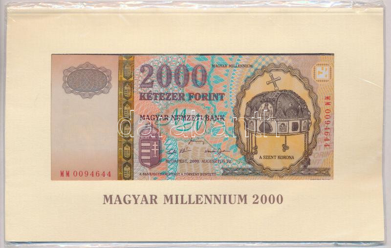 2000. 2000Ft "Millennium" eredeti, bontatlan csomagolásban T... https://www.darabanth.com/hu/285-Gyorsarveres/285.0/Numizmatika/Magyar-bankjegyek~300006/2000-2000Ft-Millennium-eredeti-bontatlan-csomagolasban-TI~II1492195