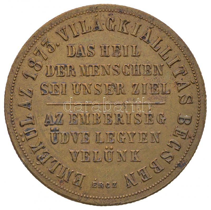 1873. "Emlékérem a bécsi kiállításra" Br emlékérem. "FERENCZ JÓZSEF I K A CS ÉS M H S D O AP KIR / EMLÉKÜL AZ 1873. VILÁGKIÁLLITÁS BÉCSBEN - DAS HEIL DER MENSCHEN SEI UNSER ZIEL - AZ EMBERISÉG ÜDVE LEGYEN VELÜNK - ÉRCZ" (15,75g/37mm) T:2- ph. / Hungary 1873. "Medal for the World Exhibition of Vienna" Br commemorative medallion (15,75g/37mm) C:VF edge error