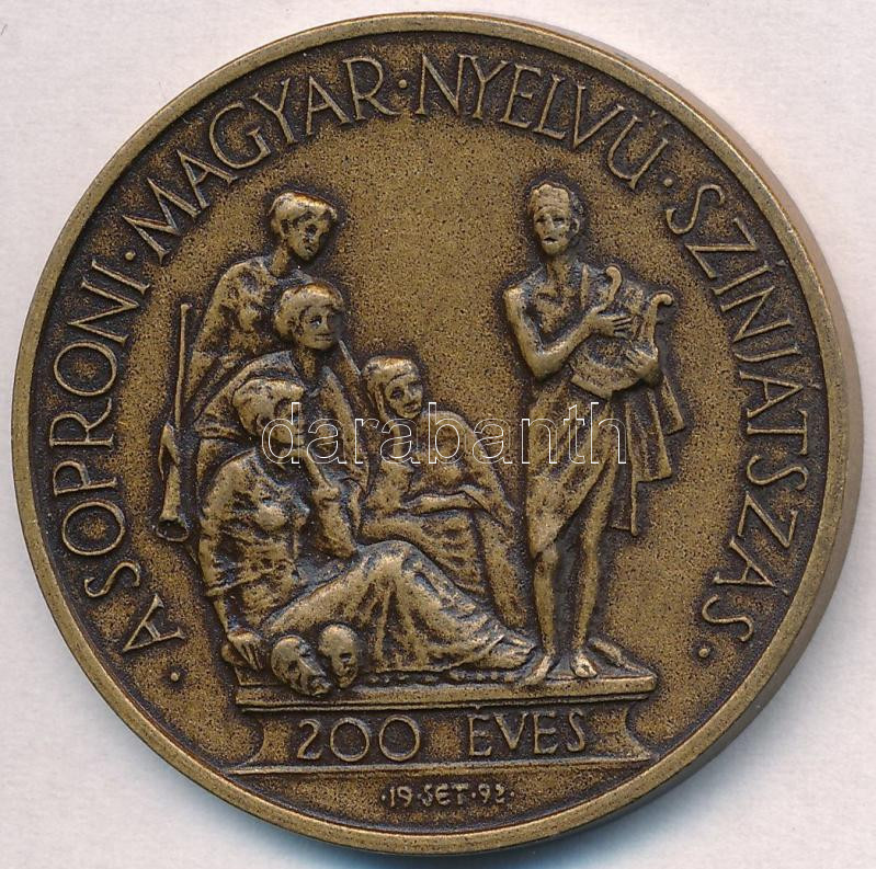 1992. "200 éves a soproni magyar nyelvű színjátszás / Petőfi Szín... https://www.darabanth.com/hu/285-Gyorsarveres/285.0/Numizmatika/Magyar-emlekveretek-plakettek~300008/1992-200-eves-a-soproni-magyar-nyelvu-szinjatszas-Petofi-Szinhaz-Sopron-Br-emlekerem-~II1471984