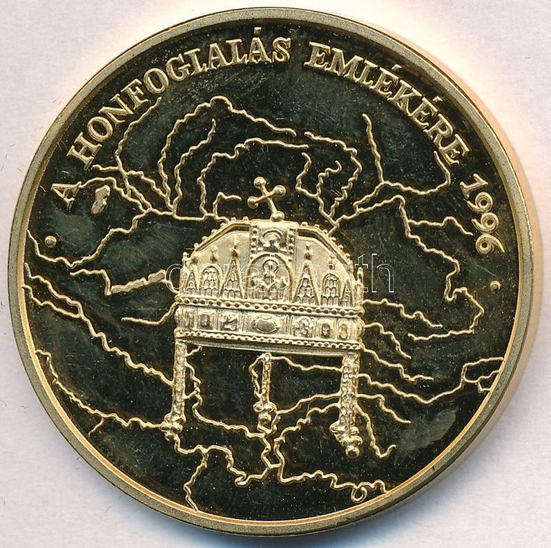 Leírás: 1996. "A Honfoglalás emlékére / Honteremtő hadjáratok" aranyozott emlékérem (42,5mm) T:1 (PP)