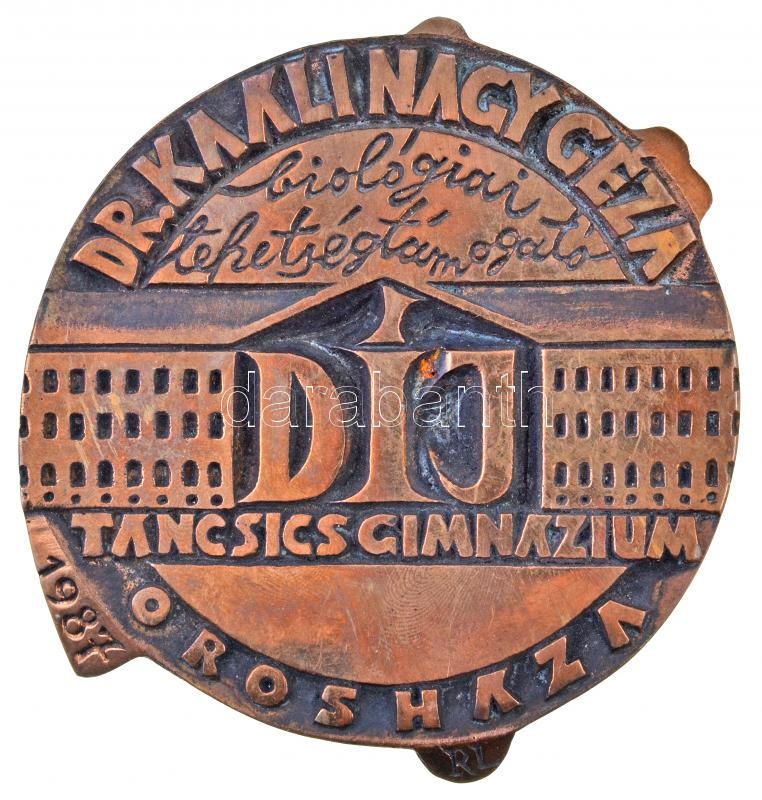 Rajki László (1939- ) 1987. "Dr. Kaáli Nagy Géza biológiai tehetségtámogató díj - Táncsics Gimnázium Orosháza" Br plakett (92mm) T:1-,2 kis öntési hiba