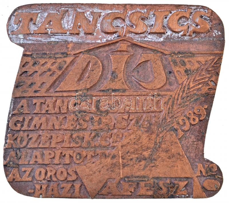 Rajki László (1939-) 1989. "Táncsics-díj - A Táncsics Mihály Gimn. és Ip. Szakközépisk. Cé. Alapította az orosházi Áfész" Br emlékplakett (100x89mm) T:2