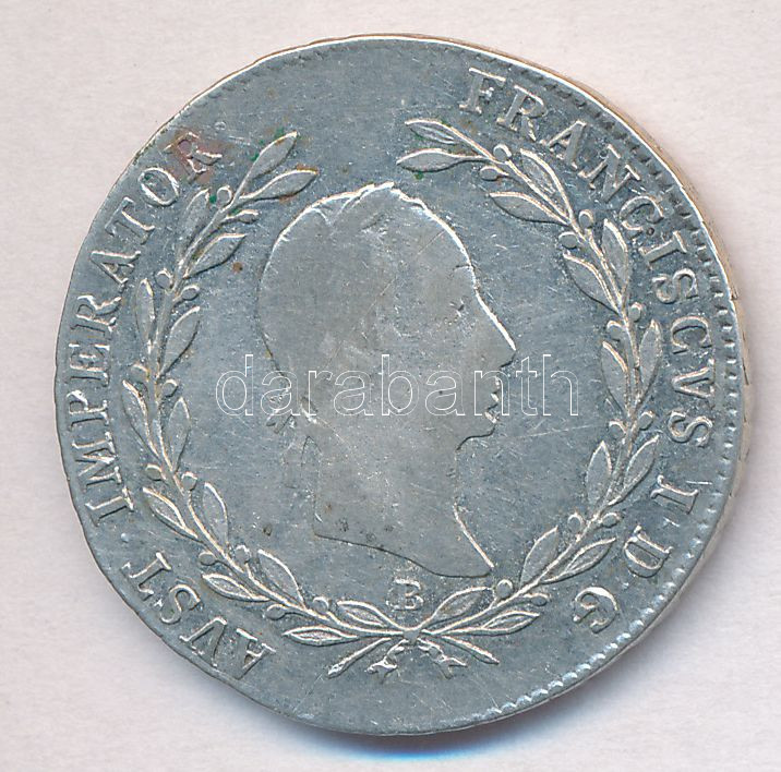 Leírás: 1829B 20kr Ag "I. Ferenc" T:2- lapkahiba