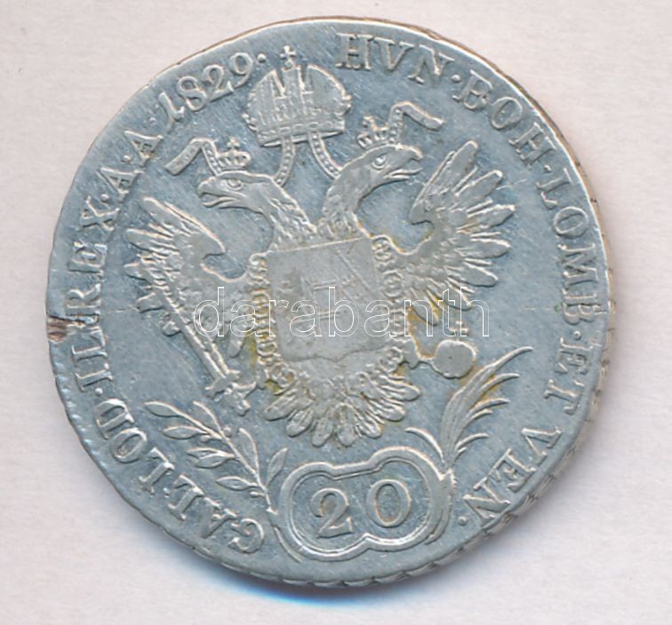 Huszár 1979., Unge... https://www.darabanth.com/hu/285-Gyorsarveres/285.0/Numizmatika/Magyar-es-magyar-verdejelu-fem-es-ezustpenzek~300007/1829B-20kr-Ag-I-Ferenc-T2-lapkahiba--Huszar-1979-Unger-III-1380a~II1484983