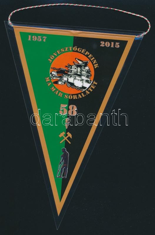 2015 Tihanyi Bányamérnök Találkozó 1957-2015 emlékzászló, 21x14 cm. https://www.darabanth.com/hu/286-Gyorsarveres/286.0/Festmeny-mutargy-papirregiseg-egyeb/Bolhapiac~11/2015-Tihanyi-Banyamernok-Talalkozo-1957-2015-emlekzaszlo-21x14-cm~II1500865