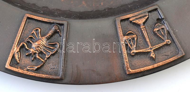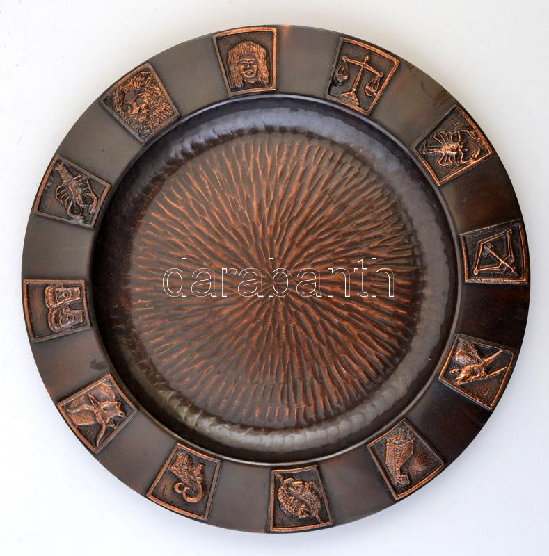 Leírás: Csillagjegyekkel díszített bronz falitányér, jó állapotban, d: 24 cm