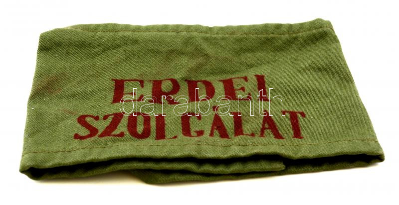 "Erdei szolgálat" feliratú karszalag https://www.darabanth.com/hu/286-Gyorsarveres/286.0/Festmeny-mutargy-papirregiseg-egyeb/Bolhapiac~11/Erdei-szolgalat-feliratu-karszalag~II1496206