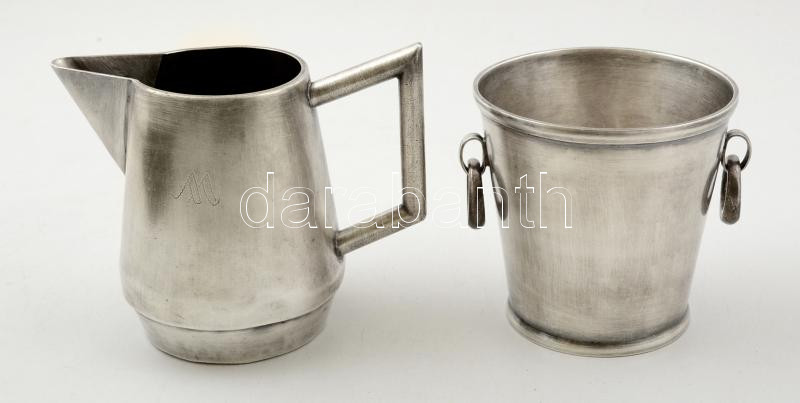 Leírás: Jelzett alpakka kiöntő (kis horpadással) és jégtartó, m:10 és 11 cm