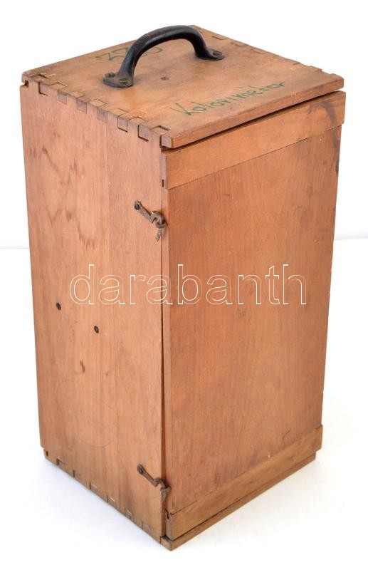 Leírás: Mom koloriméter, működik, eredeti sérült fa dobozában, m:29 cm