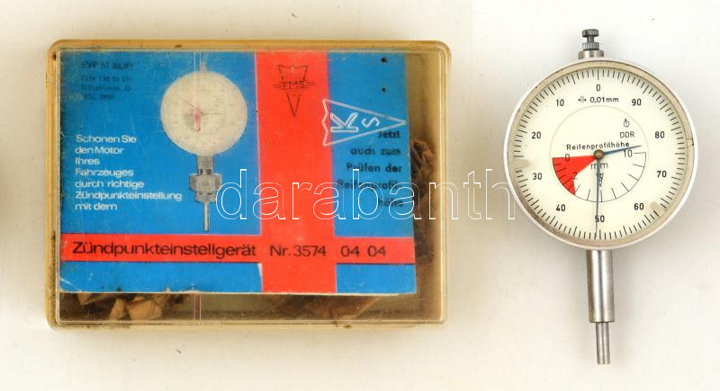 Leírás: Német gumiabroncs borda-mélységmérő / motor gyújtáspontállító műszer, leírással, saját dobozában