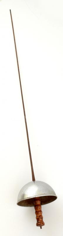 Leírás: Régi vívótőr kard, fa markolattal, kopottas, rozsdás állapotban, h: 105 cm.