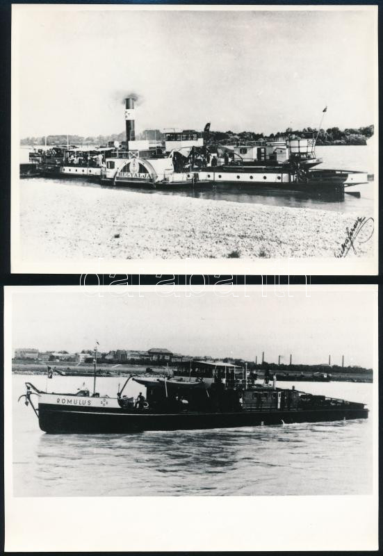 Leírás: M. kir. Hazózási rt. Romulusz és Hegyalja hajókról készült fotók modern nagyítása. 18x12 cm