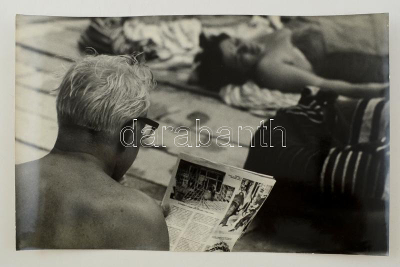 Leírás: cca 1965 Krisch Béla: Napozó, pecséttel jelzett vintage fotóművészeti alkotás, 25x39 cm