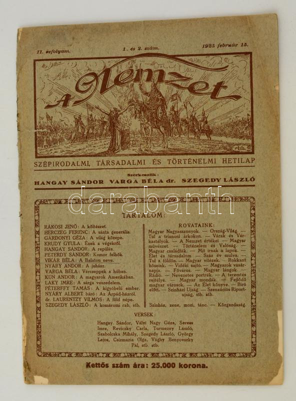 1925 A Nemzet szépirodalmi, társadalmi és történelmi hetilap II. évfol... https://www.darabanth.com/hu/286-Gyorsarveres/286.0/Festmeny-mutargy-papirregiseg-egyeb/Nyomtatvanyok~27/1925-A-Nemzet-szepirodalmi-tarsadalmi-es-tortenelmi-hetilap-II-evfolyamanak-1-es-2-szam~II1498294