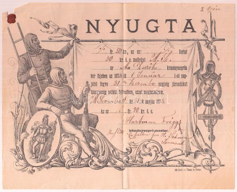 Leírás: 1878 Díszes kéményseprő számla, Muraszombat / / Chimneysweep invoice, Muraszombat/Murska Sobota.