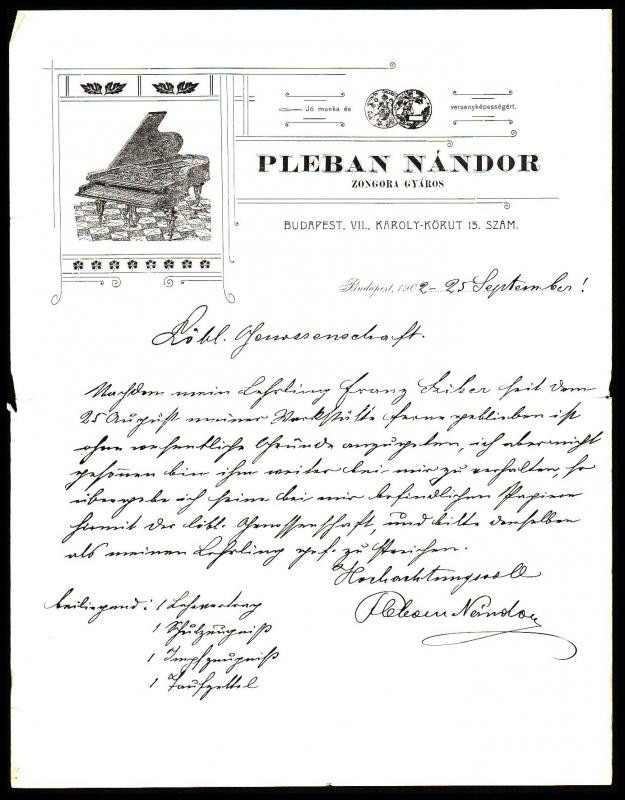 1902 Pleban Nándor zongoragyáros díszes fejléces számlája https://www.darabanth.com/hu/286-Gyorsarveres/286.0/Festmeny-mutargy-papirregiseg-egyeb/Okmanyok~15/1902-Pleban-Nandor-zongoragyaros-diszes-fejleces-szamlaja~II1498103
