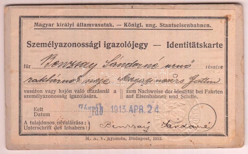 1913 Magyar Királyi Államvasutak fényképes személyazonossági igazolóje... https://www.darabanth.com/hu/286-Gyorsarveres/286.0/Festmeny-mutargy-papirregiseg-egyeb/Okmanyok~15/1913-Magyar-Kiralyi-Allamvasutak-fenykepes-szemelyazonossagi-igazolojegy~II1497658