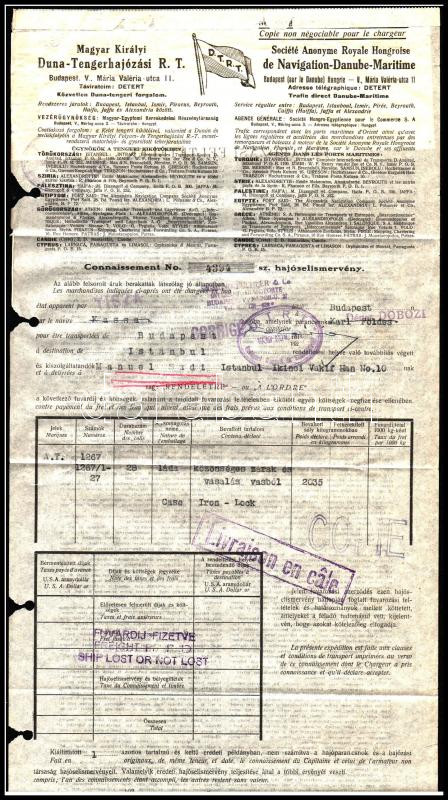 Leírás: 1939 DTRT fejléces fuvarlevél