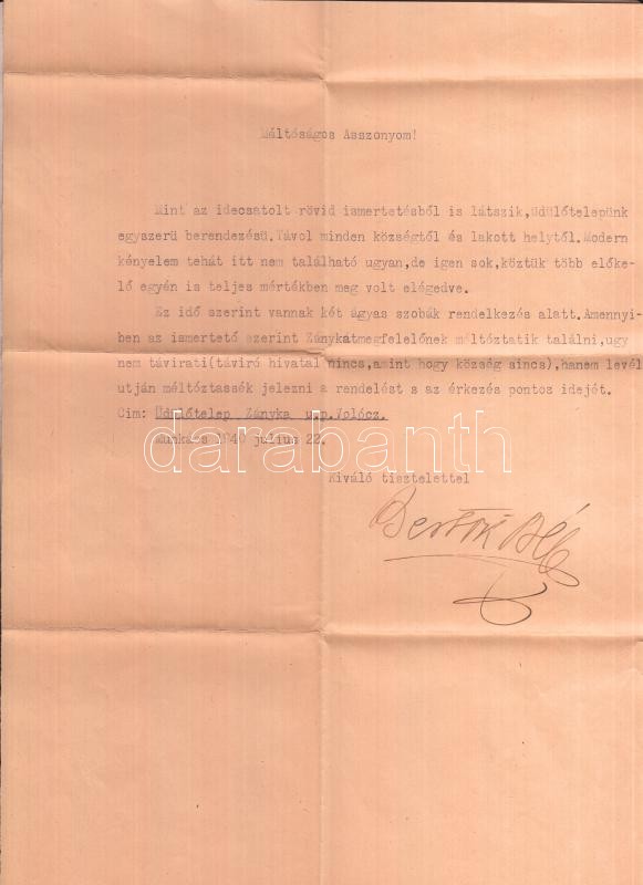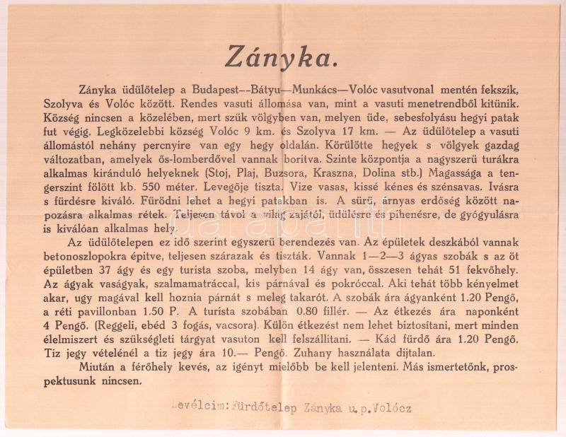 Leírás: 1940 A kárpátaljai Zányka üdülőteleppel kapcsolatos szórólap és levél