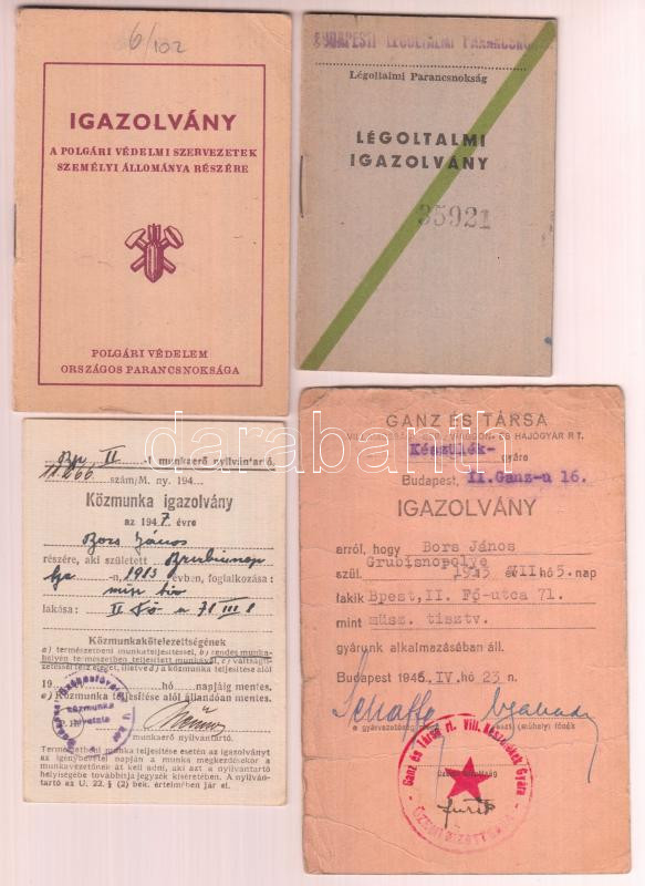 cca 1928-1971 7 db igazolvány (Ganz és Társa, Magyar Irodalmi és Művészeti Kongresszus, közmunka igazolvány, kultúrigazolvány, Tungsram, légoltalmi, stb.)