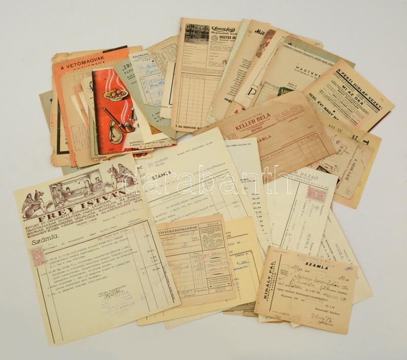 cca 1930-1945 Vegyes papírrégiség tétel: 31 db számla köztük díszes fe... https://www.darabanth.com/hu/286-Gyorsarveres/286.0/Festmeny-mutargy-papirregiseg-egyeb/Okmanyok~15/cca-1930-1945-Vegyes-papirregiseg-tetel-31-db-szamla-koztuk-diszes-fejleces-szamla-kb-6~II1495972