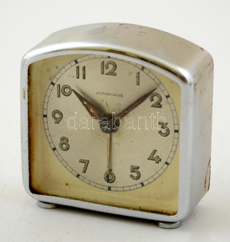 Leírás: Junghaus ébresztős mini vekker, kopott számlap, működik, 4×4 cm