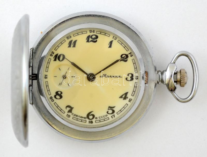 Molnia fém tokos szovjet zsebóra, működik, jelzett https://www.darabanth.com/hu/286-Gyorsarveres/286.0/Festmeny-mutargy-papirregiseg-egyeb/Orak~9/Molnia-fem-tokos-szovjet-zsebora-mukodik-jelzett~II1499813